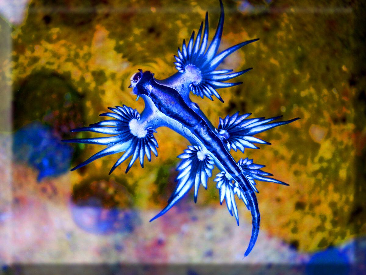 Нет, это не кадр из фантастического фильма и не персонаж компьютерной игры. Он правда существует! Это "голубой дракон", он же "голубой ангел" - голожаберный моллюск, который водится у берегов Австралии. Именно этого красавца Вы можете видеть на значке канала (ну, не удержался я, он туда прямо-таки просится). Большинство голожаберных моллюсков очень яркие и красивые, но только "голубой ангел" имеет такую необычную форму, напоминающую то ли дракона, то ли сказочную птицу.