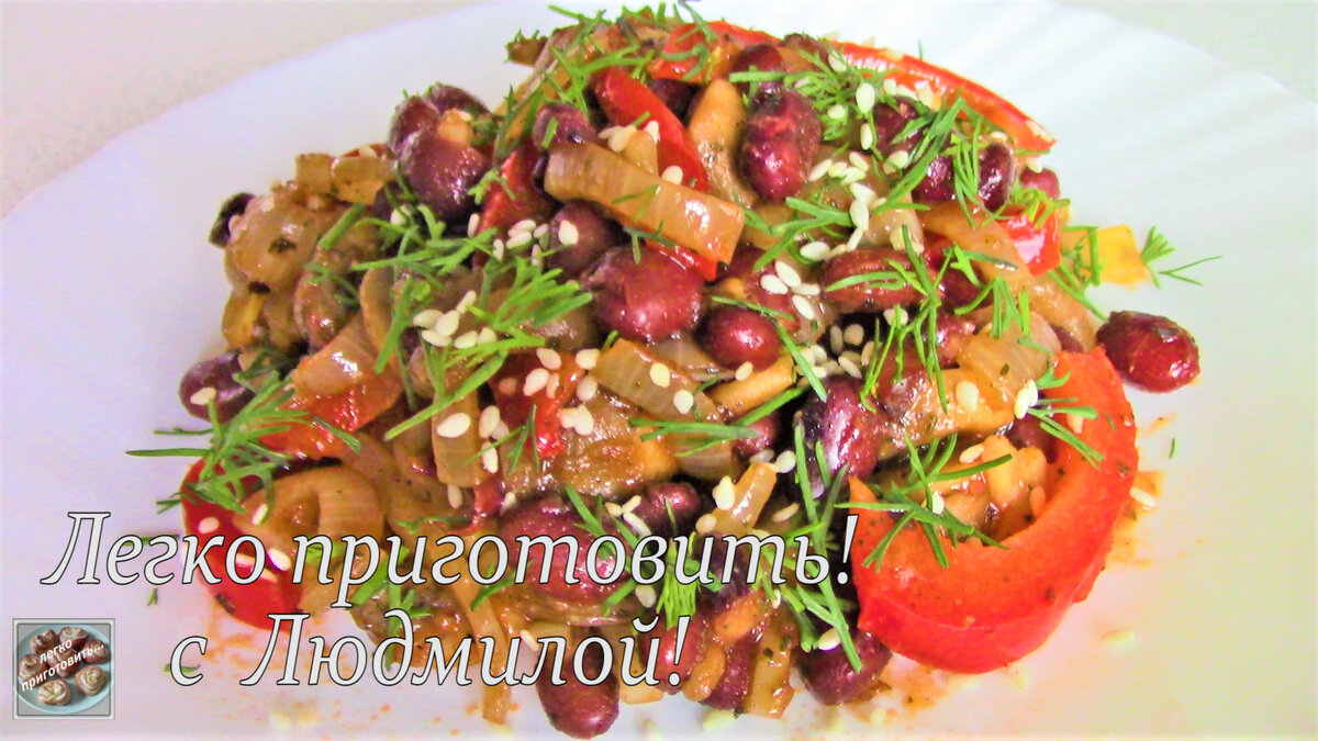 Это блюдо порадует Вас своим вкусом. Теплый овощной салат с фасолью. Постное (вегетарианское) блюдо. Легко приготовить!