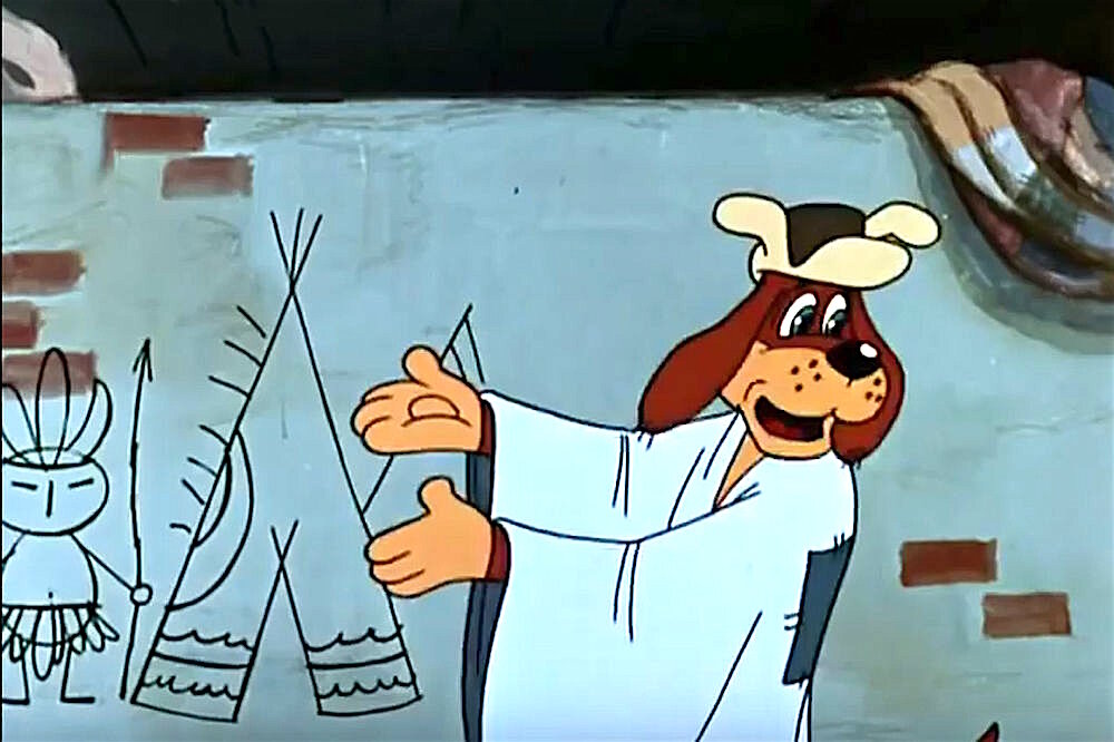 В мультфильме «Зима в Простоквашино» пёс Шарик рисует на стене печки «народную индейскую избу», которая называется «фиг-вам».