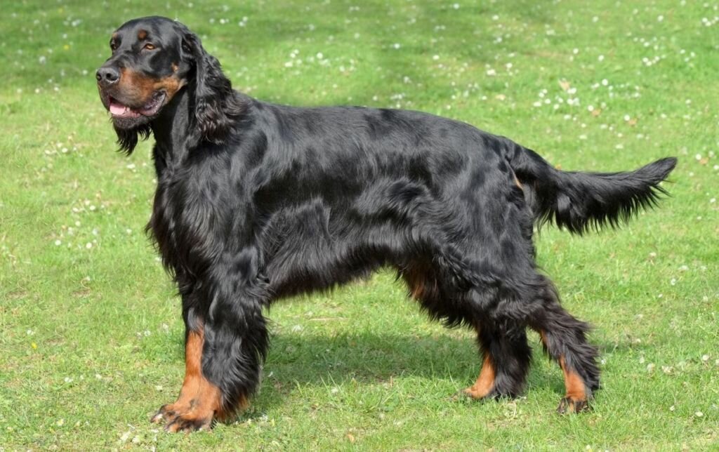 Шотландский сеттер — гордон — получил свое наименование в честь его заводчика и создателя породы герцога Гордона. Он происходит из Шотландии и потому называется шотландским сеттером. Первоначальный шотландский сеттер был тяжелой, медлительной собакой с врожденной страстью к розыску по следам, которая в нем сохранилась от его предков-ищеек, или от скрещивания с блюдгаундом. Того же происхождения его красно-рыжие подпалины, которые ни в коем случае не происходят, как многие предполагают, от скрещивания с ирландским сеттером.
