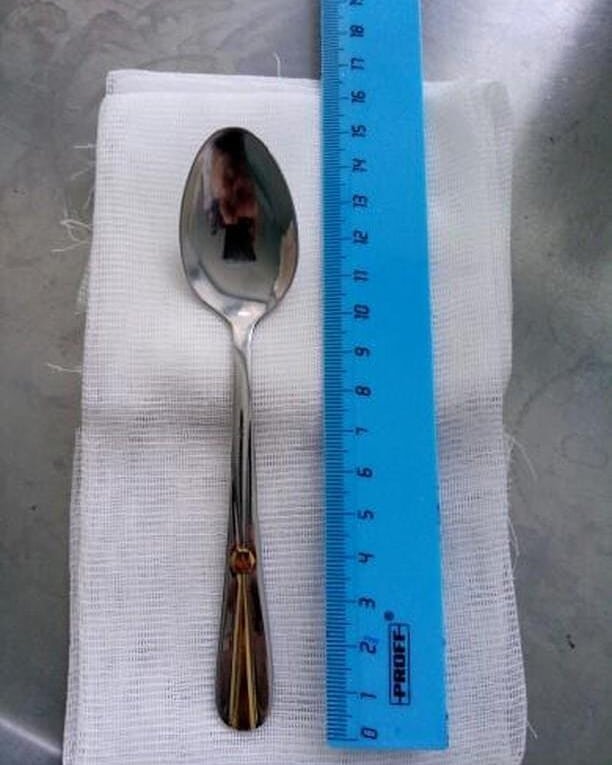 Для того, чтобы избавить ее от мучений, сотрудникам эндоскопического отделения не пришлось делать разрезы. Они достали столовый прибор с помощью специальной петли, гастроскопа и гибкой видеокамеры. На всю операцию понадобилось 20 минут.