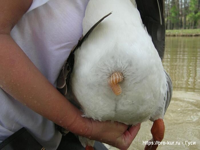Добрый день, начинающие птицеводы! Как отличить гусака от гусыни у взрослой птицы - смотрим фото и видео советы. Не всегда приобретаются маленькие птенчики, некоторые предпочитают не тратить время и силы на откорм и приобретают взрослую особь. Особенно часто покупают взрослых птиц новички. И вот глядя на гуся, созревает сразу вопрос и как же отличить среди них мальчика и девочку? Надеяться на совесть продавцов не всегда хочется и в этом случае лучше научиться определять пол самому. Научный метод Гусь укладывается на спину и фиксируется. Откидывается хвостик и раздвигается клоака. Если есть половой член который бывает от 3 до 7 см – значит это мальчик. Если нет, тогда девочка. Однако в этом методе при раскрытии клоаки самцы могут вести себя агрессивно и вырываться, но не всегда. Голос. Конечно этот более сложный метод, но если прислушаться, то можно понять, что гуси издают разные звуки. Например, у гусаков трубные крики и очень громогласные, слышится сипение, и голос издается рывками. У