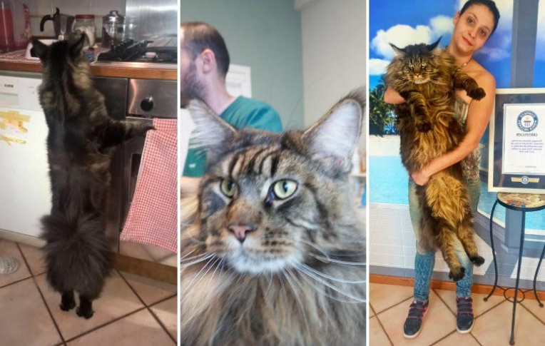 Котики уже давно захватили не только интернет, но и весь мир. Не странно, ведь эти замечательные создания являются практически идеальными компаньонами для людей. Умные, легко приручаемые, ласковые и немного хитрые. Сегодня я хочу рассказать, о самых больших в мире котах. Ведь счастья должно быть много, не так ли? Самой крупной породой котов без сомнения можно считать мэйн-кунов. Эта парода произошла вследствие скрещения рыси и домашней кошки. Мэйн-куны выглядят как обычные домашние котики, и выделяются разве что длинными кисточками на ушах и массивными подбородками. Но вот размер представителей этой породы не может не впечатлить. В среднем вес взрослого мейн-куна в два и более раз больше веса кошек других пород. Нет ничего удивительно, что в книге рекордов Гиннесса в категории «самый длинный ныне живущий кот в мире» находится представитель данной породы. Итак, встречайте: Баривель, который живет в Италии. Его длина составляет 120 см. Несмотря на большие размеры котик довольно спокой