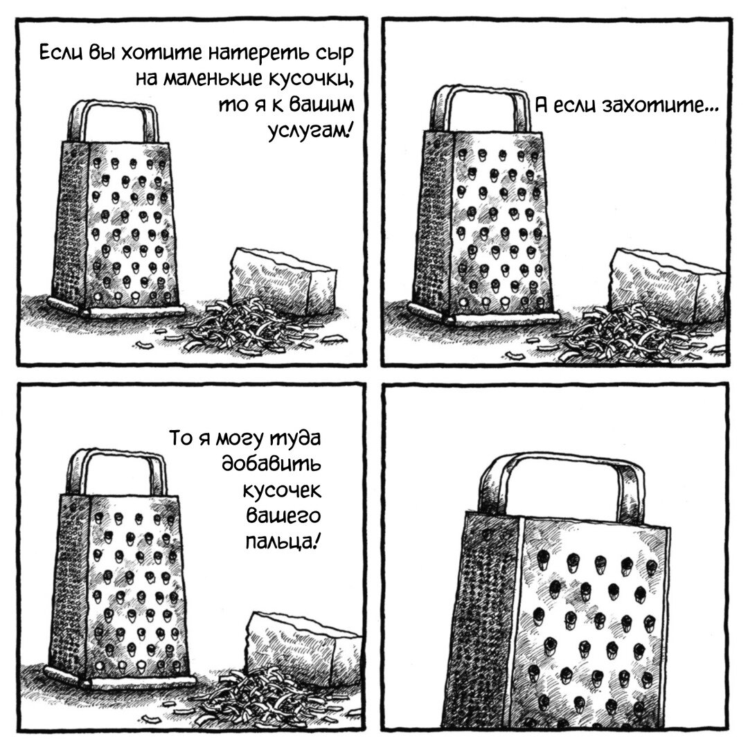 Кто-то любит готовить, кто-то не очень, но в любом случае всем нам хоть иногда приходится это делать. Для приготовления различных блюд могут понадобиться не только стандартные вещи вроде ножа или сковородки, но и другие кухонные принадлежности. К примеру, терка. Но, стоит сразу же предупредить, что порою данный инструмент может принести вам очень неожиданные неприятности. И автор комиксов Jack Likes Onion определенно знает об этом из личного опыта.