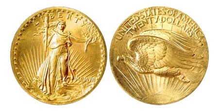 Самая дорогая монета мира была 30 июля 2002 года, золотая двадцать долларов, которая была продана с аукциона по невероятной цене в 7 590 000 долларов на аукционе Sothebys and Stacks New York. Это единственная сохранившаяся часть раскопок 1933 года. Все золотые монеты этой серии были расплавлены в соответствии с указом президента Фраклина Рузвельта и остановлены. Это произошло в результате глобального экономического кризиса (Великой депрессии), разразившегося в 1929 году.