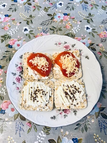 Хлебцы 4 шт (56 ккал) + творожный сыр Альметте 40 гр (113 ккал) + сыр тертый 10 гр (36 ккал) = 205 ккал!