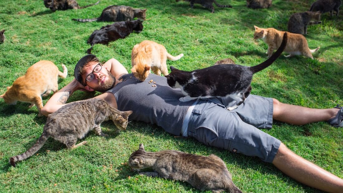 Что лучше, чем отдыхать в раю? Посещение мурлыкания на курорте Гавайских островов «Меховые сезоны», как ласково называют святилище кошек Ланаи. Кошки живут на частной огороженной территории, которая примерно вдвое меньше футбольного поля. У них есть дыры, коробки, корзины и другие конструкции, в которые можно залезть и у них достаточно места, чтобы растянуться. Расширения в настоящее время продолжаются, и когда-нибудь святилище сможет вместить до 1200 кошек одновременно. Святилище было основано бывшим диетологом Кэти Кэрролл, которая решила заняться проблемой дикой кошки на острове и было официально учреждено как благотворительная организация в 2009 году и теперь получает около 200 новых кошек в год (примерно 50 из них принимаются ежегодно). Центр также принимает около 12 000 посетителей каждый год, что «почти в четыре раза превышает человеческое население». Хотя большинство кошек дикие, около 40 процентов из них становятся социализированными благодаря постоянному потоку посетителей.