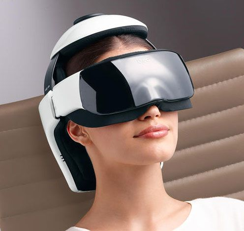 Массажер для глаз – это портативное устройство, которое позволит увеличить остроту зрения, снять чрезмерное напряжение от длительного пребывания за компьютером, чтения книг или просмотра телевизора. Аппарат может использоваться для профилактики близорукости, а также для лечения головных болей, вызванных постоянным переутомлением и стрессами. Устройства повышают тонус кожи вокруг глаз, усиливают кровообращение, повышают мозговую деятельность и работоспособность. Поэтому с их помощью удастся избавиться от преждевременных морщин, устранить отеки и темные круги под глазами. Плюсы массажеров для глаз Наиболее популярным считается массажер для зоны вокруг глаз в форме очков. Модель хорошо фиксируется по окружности головы, не слетает, позволяет максимально расслабиться во время процедуры. Поэтому эффективность массажа увеличивается. Очки-массажер для глаз сочетает в себе ряд преимуществ: В продаже представлены универсальные массажеры в виде шлемов, которые оказывают воздействие еще на голову.