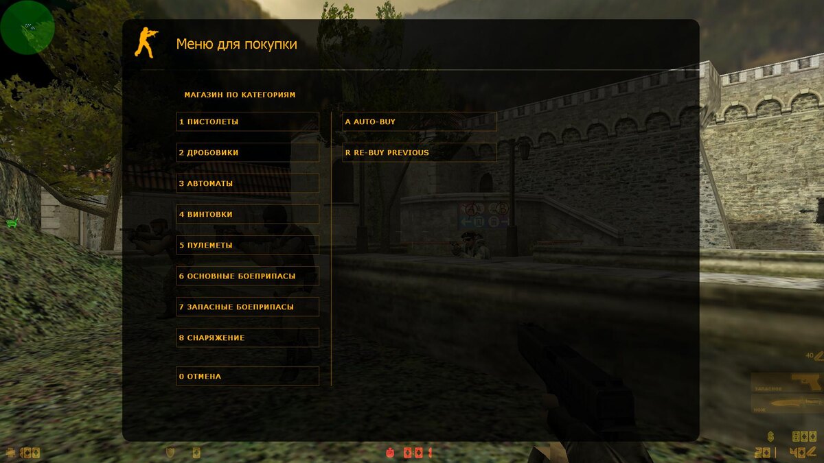 И так Вы зашли на любимый сервер или просто на случайный Public, выбрали команду и вот он спаун. Обратный отсчет freezetime идет, раунд вот-вот начнется, а в Вашем арсенале лишь нож, да стандартный пекаль и скудные $800 на счете. Если это первый раунд за карту - куда ни шло, все же у Вас как и у противников равные шансы на закупку, но раунд не первый и кто-то может себе позволить М4А1, Ак47, а то и aWp. Что же остается Вам? Купить пару гранат, а может быть броню или все же более совершенный пистолет ? Есть ли у Вас шансы составить противостояние более вооруженным силам противника? Меню покупки открывается нажатием клавиши "B" или вводом в консоль "buymenu". Не переживайте, да, шансы у Вас есть и притом неплохие. А помогут Вам как раз эти $800, потраченные с умом. В зависимости от Вашей команды, наши рекомендации состоят в следующем. Играя за спецназ, не обязательно приобретать более мощный пистолет: стандартного USP Вам вполне должно хватить. Однако Вам необходимо купить броню, а на