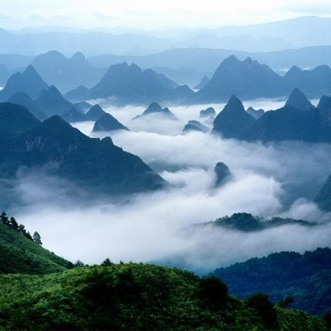 Горы Гуйлинь — карстовые образования вдоль реки Ли, рядом с городом Гуйлинь провинции Гуанси в Южном Китае. По-китайски Гуйлинь означает «лес деревьев кассии». Толстые слои известняка, из которого состоят утесы, откладывались когда-то на дне древнего моря. Несколько миллионов лет спустя этот участок земной коры поднялся и дожди постепенно начали размывать породу, уже ослабленную трещинами и разломами. При вторичном подъеме почвы ослабевшая к тому времени порода местами обвалилась, оставив одиночные конические башни, состоящие из более устойчивого к эрозии известняка — превосходный пример так называемого башенного карста. Известняковая область, частью которой являются горы Гуйлинь, тянется от южной части Центрального Китая до Северного Вьетнама. Утесы достигают в высоту в среднем 100 м, многие из них покрыты лианами, небольшими деревцами и орхидеями. Горы изрыты пещерами и тоннелями, вымытыми за многие века дождевой водой. Во время Второй мировой войны множество людей прят