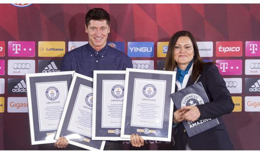 Нападающий «Баварии» Роберт Левандовски вошёл в Книгу рекордов Гиннесса. 27-летний футболист вышел на замену в перерыве домашнего матча 6-го тура немецкой Бундеслиги с «Вольфсбургом» (5:1) и забил пять голов в промежуток с 51-й по 60-ю минуты. Левандовски получил сразу четыре сертификата: за самый быстрый хет-трик (3 минуты и 22 секунды), покер (5 минут и 42 секунды) и пента-трик (8 минут и 59 секунд), а также как рекордсмен по количеству голов в одном матче Бундеслиги после выхода на замену (5)