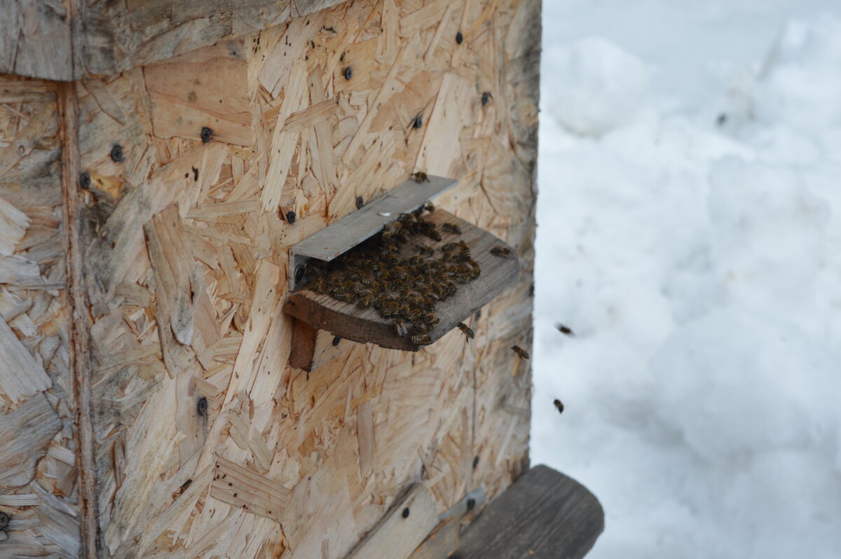 Каждый год весной пчеловод, ульи которого зимуют с заносом в помещение, начинает прикидывать , когда наступит время выносить пчел на улицу. Присматриваешься к природе, прислушиваешься к прогнозу погоды. Как только выглядывает солнышко, думаешь "вот, пора бы" . И вроде бы снег лежит за городом, и ночи холодные, а на душе не спокойно. И вот, в прошлую субботу пришло время Х. Приняли решение "едем и выносим". К воскресенью обещали +12 °С. Приехали. На точке ровным слоем лежит снег. Ну мы были к этому готовы. Раскопали площадку под установку опор и дорожку для прохода. Выносить ульи - самая тяжелая работа в году. Даже осенью, не смотря на то, что ульи тяжелее, идешь по сухой дорожке, а не проваливаешься в снег. Осмотр проводить не стали. На улице было пасмурно и +3° С. Но пчелки вылезли из летка. Некоторые все равно поднялись в воздух. Перед ульями расстелили черный лутрасил. Если кто не сможет подняться, присядет и, может быть, отдохнув, доберется до улья. Всегда жаль тех, кто у