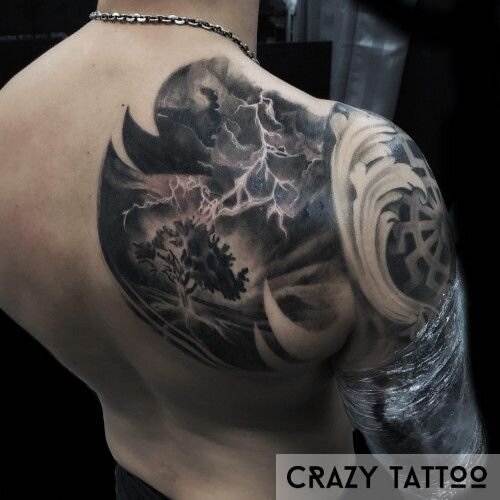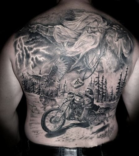 Обычно такие татуировки рисуют на спине или груди, чтобы побольше места, чтобы развернуться.