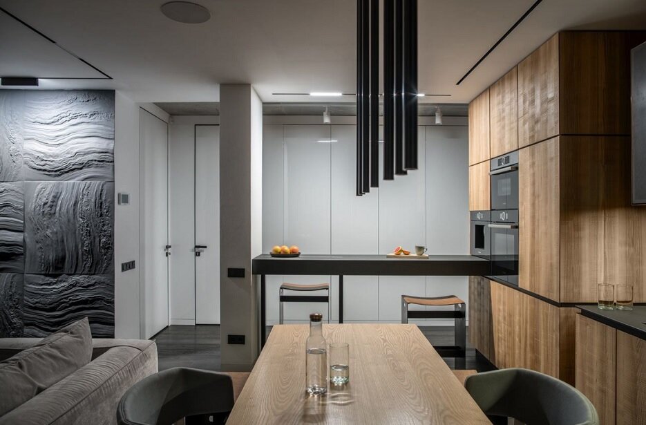 Как бы я отделил пространство кухни от гостиной в квартире-студии без стен. 6 эффектных решений