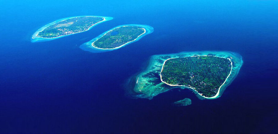 Острова Гили в Индонезии - это три маленьких кусочка суши в Индийском океане: Гили Траванган, Гили Мено и Гили Айр (или Эйр). Самый большой из них - остров Гили Траванган не превышает 2-х километров в диаметре. Здесь запрещены двигатели внутреннего сгорания, поэтому на островах нет автомобилей, вместо них услуги такси выполняют кареты, заряжённые лошадками, а все туристы и местные жители передвигаются по суше в основном на велосипедах.