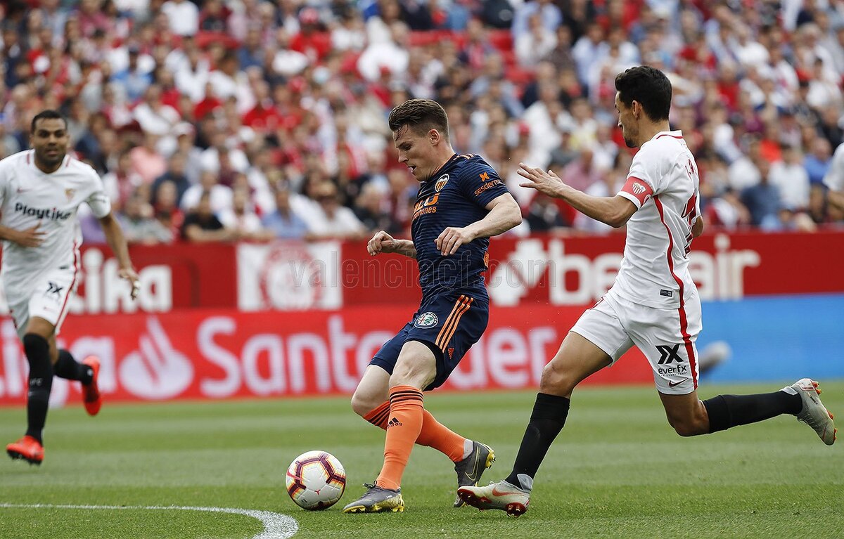 Поединок между "Севильей" и "Валенсией", безусловно, можно было назвать матчем "за шесть очков". Обе команды стремятся забраться на четвёртое место, и встреча между ними получилась напряжённой и бескомпромиссной. Чаша весов могла качнуться как в одну, так и в другую сторону, но в итоге победа досталась "Валенсии", которая продлила свою внушительную беспроигрышную серию до шестнадцати матчей. Левантийцы смогли распечатать ворота юного Хавьера Диаса, который встал в "рамку" в отсутствие Вацлика и Сориано, перед самым перерывом. Такое развитие событий получилось закономерным - в первом тайме гости выглядели предпочтительнее. Их контратаки периодически создавали сложности нервионцам, тогда как хозяева в позиционном наступлении почти ничего не создавали. Отличились "летучие мыши" с пенальти, который заработал Хосе Луис Гайя. А приговор в исполнение привёл Даниэль Парехо. В перерыве Хоакин Капаррос бросил в бой Франко Васкеса, и 22-й номер андалусийцев добавил агрессии атакам "Севильи". Васкес отметился несколькими опасными выстрелами, но успеха не достиг. Впрочем, и "Валенсия" могла упрочить своё преимущество. После передачи Дениса Черышева, который также вышел на второй тайм, в перекладину пробил Кевин Гамейро. Особенно насыщенным получилось компенсированное время, когда хозяева претендовали на пенальти после падения Максима Гоналона в чужой штрафной, но арбитр был иного мнения, а затем всё тот же Гоналон переправил мяч в ворота, однако судья определил в этой атаке офсайд у Бен-Йеддера. В итоге "Валенсия" удержала минимальную победу и сравнялась по очкам с "Севильей". А по дополнительным показателям её даже опередила. Впрочем, обе команды по-прежнему сохраняют хорошие шансы на четвёртое место, от которого их отделяют всего три очка.