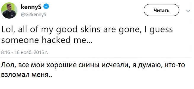 Приходилось ли вам сталкиваться со взломами аккаунтов? Steam предоставляет огромное количество уровней защиты для наших аккаунтов. Всего лишь стоит поставить Steam Guard на телефоне и вроде бы всё, это полная защита и ты думаешь, что ты в безопасности? Для взлома нет неприкосновенных. Даже киберспортсмены подвергались различным взломам и сейчас я о них всё опишу. Первая история произошла с популярным игроком Kennys в ноябре 2015 года. Как мы знаем, тогда не было такой защиты, как сейчас. Все аккаунты были уязвимы. Вторая история произошла с s1mple в августе 2015 года. s1mple просто стримил, как он играл на сайте и случайно спалил всё, что только нужно было тогда для взлома: почту, логин и steam guard код. И несмотря на его длинный пароль, его все равно взломали.