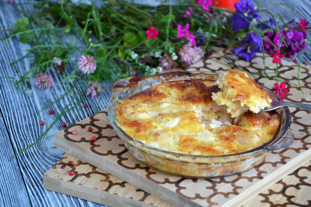 ЗАПЕЧЕННОЕ КУРИНОЕ ФИЛЕ В ОМЛЕТНО-СЫРНОЙ ЗАЛИВКЕ.