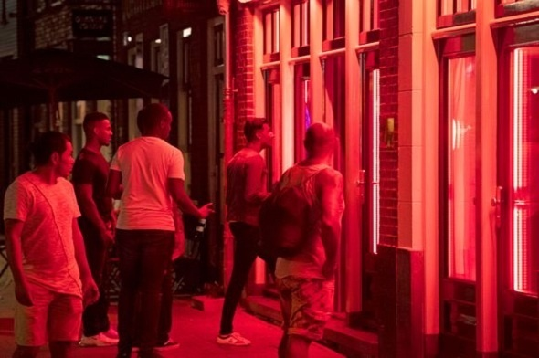 Вот так выглядит и сейчас вечерний Амстердам в квартале Красных фонарей