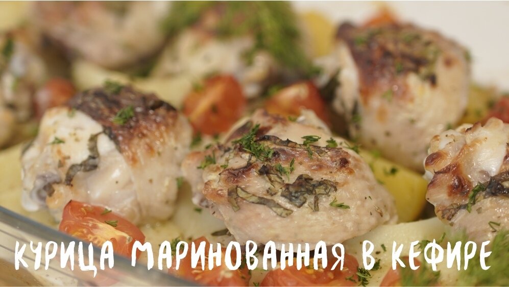 Способов маринования мяса, в том числе и курицы, - огромное количество. Но один из самых здоровых, полезных и простых вариантов – замариновать в кефире. Пресно и сухо точно не будет, ведь к кефиру мы добавим пряности. А запекать будем вместе с картофелем, так что такое блюдо будет идеальным ужином для всей семьи. Поехали! Ингредиенты: Приправа картофель ароматный «Айдиго» - по вкусу; Приправа курочка пряная «Айдиго» - по вкусу; Соль розовая «Айдиго» - по вкусу; Прованские травы «Айдиго» - по вкусу; Масло растительное – 30 мл.; Базилик – 50 гр.; Кефир – 200 мл.; Чеснок – по вкусу; Помидоры – 1-2 шт.; Картофель – 4 шт.; Куриные бедра – 6 шт. Приготовление: Приготовим маринад. Мелко режем базилик, чеснок, добавляем в кефир. Далее добавляем соль, специи и травы. Мариновать мясо нужно в течение 30-40 минут. Картофель чистим, режем дольками. Укладываем его в форму для запекания, добавляем растительное масло, помидоры и еще немного специй. Сверху на картофель выкладываем куриц