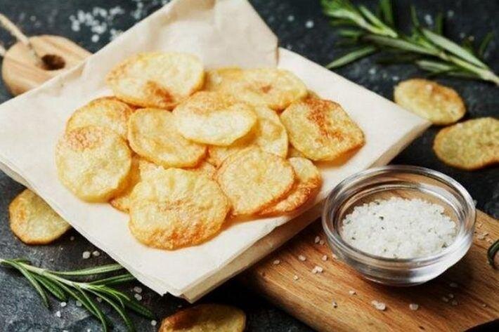 А знаете ли вы, что пока вы едите чипсы, они едят вас. В них содержится вещество под названием - акриламид . Оно образуется при переработки крахмала и может вызывать рак. Но давайте на частоту, пока трудно найти замещение вкусняшке , поэтому вряд ли это нас остановит. Но постойте , я покажу вам рецепт полезной хрустящки в домашних условиях. Сейчас , только достану его с полки... ******************************************************************************* Начнём мы с классики - картофельные чипсы Клубни нарежьте полупрозрачными слайсами(тонкий срез) и хорошо промойте от крахмала. Просушив на бумажном полотенце (обязательно нужно просушить , для придания золотистого вида и хруста) , посолите и сбрызните маслом. Разложите на пергаментной бумаге и запекайте в разогретой до 180 °C духовке до золотистого цвета. Посыпьте специями на свой вкус- к примеру паприка Второй вид и уже более полезный - морковные чипсы И вправду , в отличие от картофеля - морковь содержит в себе витамины группы