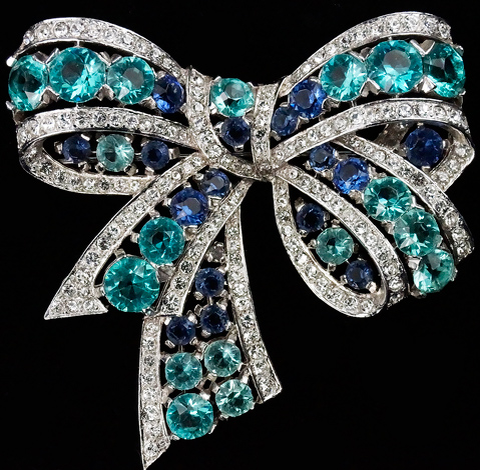 дизайна своих брошей в форме банта с кристаллами,черпал вдохновение из лент и драпированных тканей которые подчеркивали конструкцию платья.