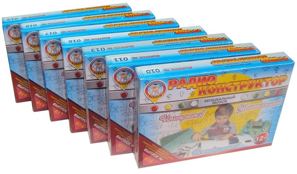 Остальные варианты содержат наборы необходимых радиодеталей и принадлежностей для сборки определённых конструкций. В комплект входят ламинированные схема, описание, фотографии.