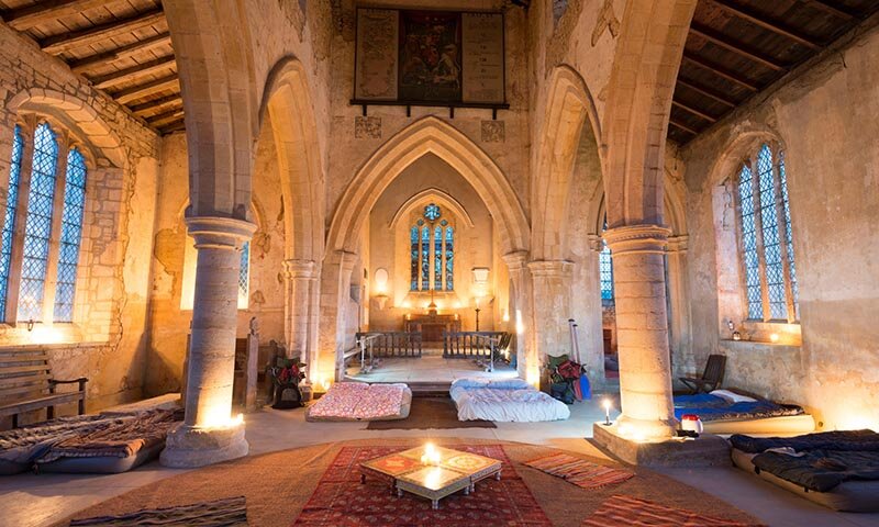 В той же Англии Фонд Сохранения церквей организовал движение кэмпинга Champing. Переночевать под древними сводами можно с марта по сентябрь. Останавливаясь в церкви, вы получаете её в полное распоряжение: можете играть на органе, играть в прятки на хорах, нишах и в исповедальнях. Местные священнослужители считают, что церковь всегда давала кров всем нуждающимся, так что идея принять уставших путников не нова. На сайте Champing™ есть подробная карта Англии с большим выбором церквей разных эпох. Поклонники Чарльза Дикенса могут остановиться в церкви Святого Джеймса в графстве Кент, которую писатель обессмертил в романе «Большие надежды».