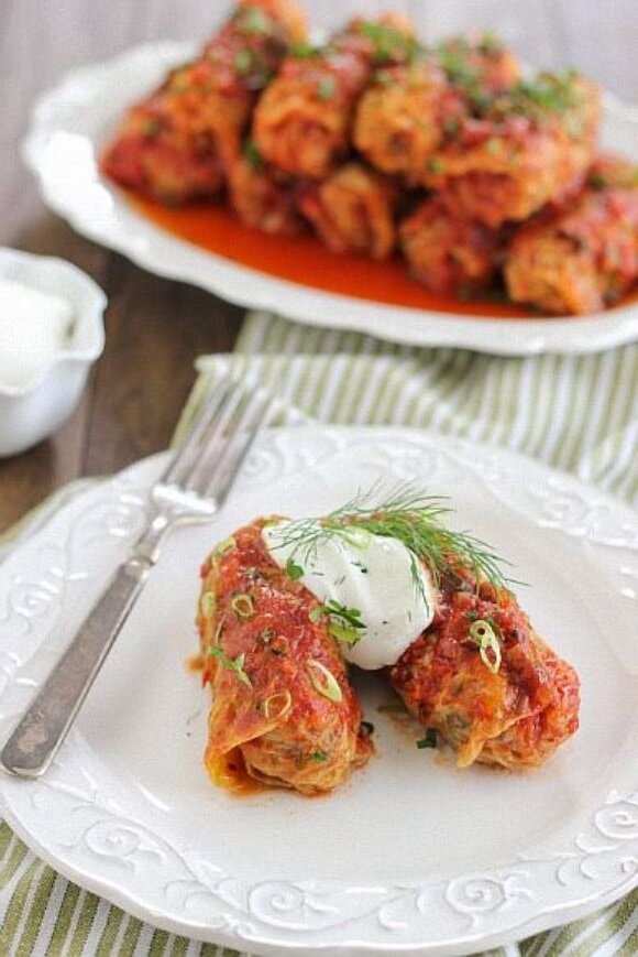 Голубцы с гречкой и грибами – сытное и очень вкусное блюдо, которое обязательно Вам понравится. Голубцы с начинкой из грибов и гречкиможно приготовить на обед или ужин. Ингредиенты для голубцов с гречкой и грибами: Голубцы: Соус: Гарнир: Приготовление голубцов с гречкой и грибами: Возьмите большую кастрюлю с водой, поставьте на огонь и доведите до кипения. Вырежьте сердцевину из кочана капусты и погрузите капусту в воду. Подержите капусту в кипящей воде до тех пор пока листья не будут мягкими и будут свободно сниматься один за другим с кочана – примерно 5 минут будет достаточно. Вы можете листья снимать прямо в кастрюле помогая себе вилками или же выложить капусту в миску и там снимать листья. В любом случае будьте очень аккуратны и осторожны так как очень горячо. Но если вы все же сняли их в кастрюле то листья там не должны долго оставаться так как могут стать почти варенными. Лучше будет их выложить в отдельную миску и дать остыть. Отварите до полу готовности гречку. Сухие г