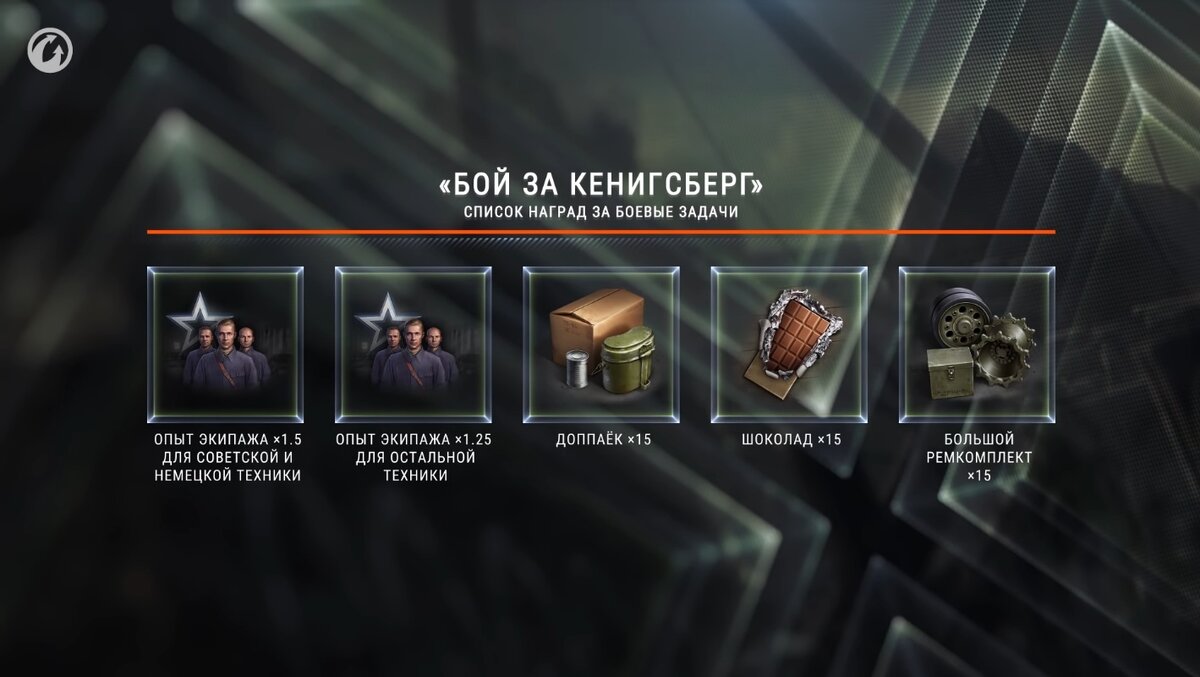 Опыт экипажа x1.5 для советской и немецкой техники, опыт экипажа x1.25 для остальной техники, 15 доппайков, 15 шоколадок и 15 больших ремкомплектов. [12 апреля] Событие «Космические выходные», подробности не раскрывают. Подпишись на канал, оцени этот материал лайком, поделись с друзьями. И не забудь оставить свой комментарий.