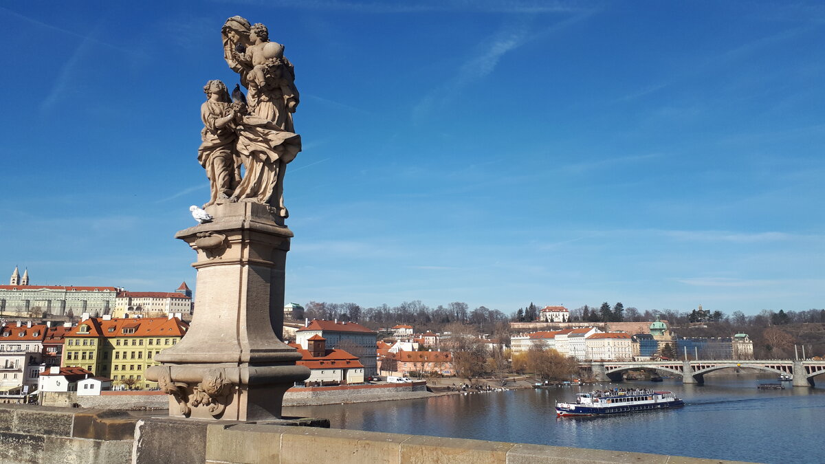 Раз не получилось в этот день побывать внутри собора святого Вита, попробуем посмотреть изнутри шедевр модернизма - Общественный дом. В Старый город возвращались уже по другому мосту, сфотографировав с него Карлов.