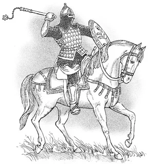 Кистень русского дружинника - это оружие ближнего боя, в том числе конного. Он был, как правило, небольшого размера - рукоять где-то в локоть, и ударная часть - в куриное яйцо или чуть больше, на короткой, не более 10 см, веревке. Цепь, в противовес популярному мифу, применялась реже.