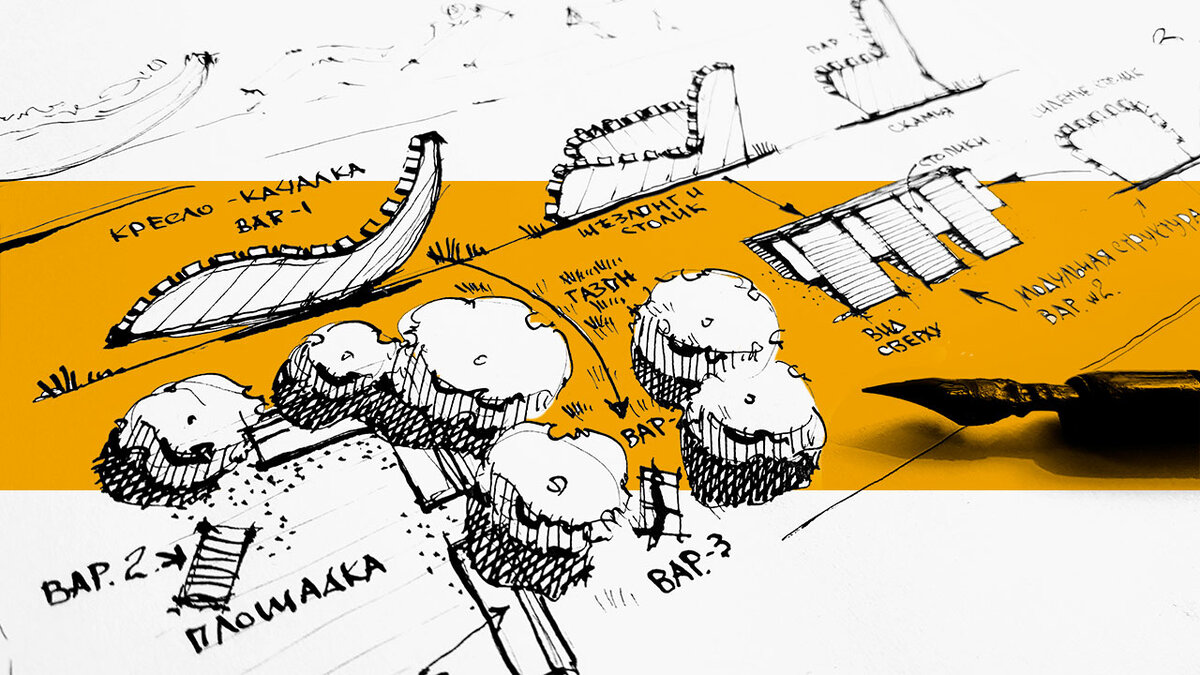 Сегодня всплыл дааааавний проектик небольшого сада-парка с яблонями, и вот, пришло время его немного изменить под мое нынешнее понимание ландшафтной архитектуры. Видео подробное про рисование всего этого как обычно в конце статьи. Пришли в голову 3 модуля - варианта скамейки и их комбинации. Первое - это простое кресло - качалка, но адаптированное к уличным условиям. Достаточно грубая, что бы быть прочной и в то же время изящная форма думаю хорошо подойдет для нескольких экземпляров в пространстве сада и на площадках. Так же есть смысл в такой форме (первый рисунок ниже)- она дает возможность отдыхать очень расслабленно, она статична, но ее можно переносить и использовать вместе с модулями столиков-сидушек . Как это выглядит в плане : при необходимости из этих модулей можно составлять произвольное пространство для общения и отдыха. Вот как вкратце работают эти варианты в пространстве сада: кресло качалка на газоне, шезлонг в пространстве площадки, обычная скамейка - по периметр
