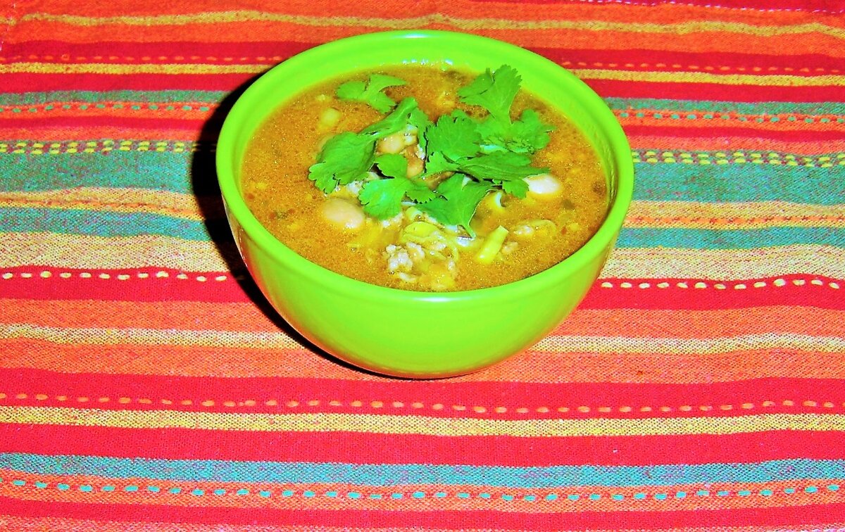 Мексиканский фасолевый суп с фаршем, томатами и луком-пореем