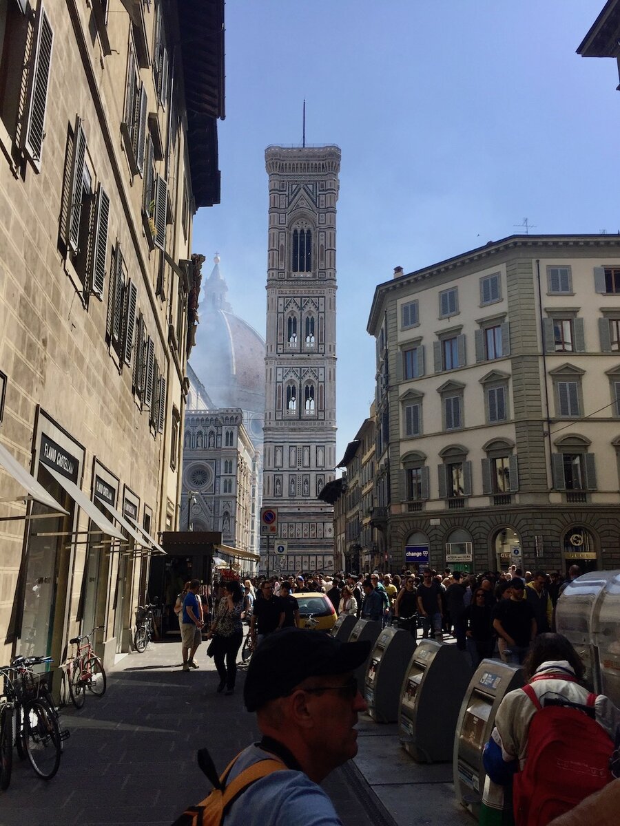 Католическая пасха и современное уличное искусство. Первая часть и первый день рассказа - здесь. Утро второго дня началось, неожиданно, с канонады. Мы только вышли из отеля, чтобы погулять по старому городу, как услышали пальбу. Но, оказалось, что это не пушки, а фейерверк. Началась католическая Пасха. На улицах, которые и в обычные дни переполнены туристами, было огромное количество народа. Мы пошли на шум и нам открылся вид флорентийского собора Дуомо в дымке после выпущенных залпов салюта. Красиво, согласитесь? Собор Дуомо (правильное название собор Санта-Мария-дель-Фиоре) стоит посетить не только в период католических праздников, но и в обычные дни. А если запастись терпением и выстоять очередь, то получится еще и подняться наверх, откруда откроется потрясающий вид на Флоренцию. Вообще, собор Дуомом является пятым по величине собором в мире - 153 на 90 метров. И он настолько возвышается над всеми историческими зданиями города, что заметен практически из любой точки. Собор и колоко