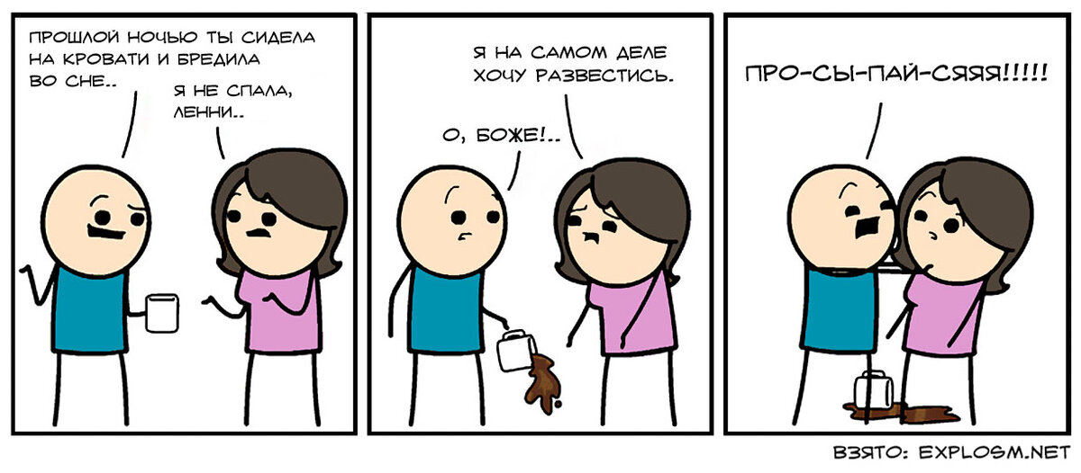 Сегодня середина недели, а это значит, что на ваших экранах очередная мини-подборка авторских переводов замечательных комиксов от абсолютно безбашенной компании художников, давших миру фривольных (и, зачастую, аморальных) персонажей под названием "Цианида и Счастье" (Cyanide & Happiness).