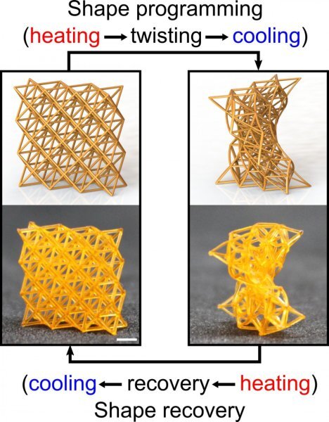 Совершенно новые материалы, разработкой которых ученые начали заниматься совсем недавно - 4D-материалы. 4D-материалы - умные материалы, которые могут превратиться из твердого дерева в мягкое вещество, как губка, а также изменить форму. Представьте себе умные материалы, которые могут превратиться из твердого дерева в что-то мягкое, как губка, а также изменить форму. Инженеры Rutgers University - New Brunswick создали гибкие, легкие материалы с 4D-печатью, которые могут обеспечить лучшее поглощение ударов, изменение формы крыльев самолета или дронов, мягкой робототехнике и крошечным имплантируемым биомедицинским устройствам. Это исследование опубликовано в журнале Materials Horizons. Credit: Chen Yang/Rutgers University-New Brunswick Source: https://worldofmaterials.ru/531-4d-pechatnye-materialy-mogut-byt-kak-zhestkimi-tak-i-myagkimi 3D-печать, также известная как аддитивное производство, превращает цифровые чертежи в физические объекты, создавая их слой за слоем. 4D-печать основана на