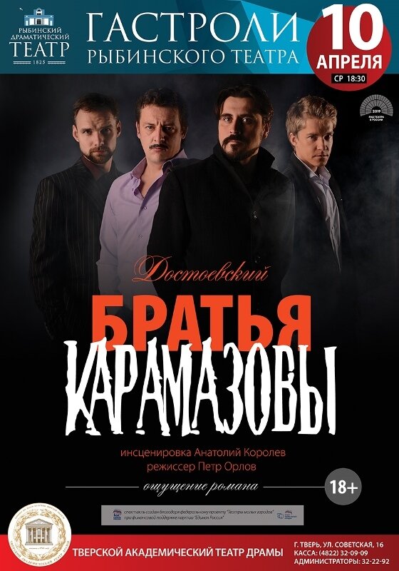 Рыбинский драматический театр представит в Твери «Братьев Карамазовых»