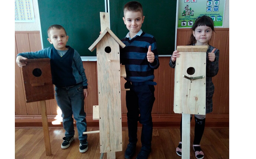 Ребята из 1 "А" ГУО "СШ № 3 г. Барановичи" к Международному дню птиц смастерили скворечники. Рабцевич Арсений вместе с папой сделал необычный трехэтажный скворечник. Новые птичьи домики ребята поместили в школьном парке. Птицы будут довольны! Светлана Дудко