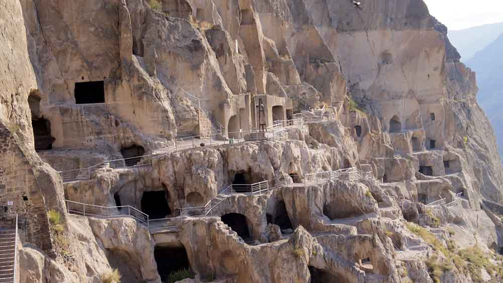 Заманчивые экскурсии по Грузии: пещерный город Вардзия Страна загадок и сказочной красоты В западной части Закавказья за величавыми вершинами Большого Кавказского хребта расположилась страна удивительной красоты, покоряющая сердце каждого, кто решится познакомиться с ней поближе. Экскурсионные туры в загадочный регион планеты приглашают в Грузию 2019 года, подготовившую для своих гостей еще более интересные туристические проекты. Необыкновенное путешествие начинается уже с того момента, как туристы пересекают границу и начинают вояж по Военно-Грузинской дороге. Пейзажи, открывающиеся взору за окошком автомобиля, напоминают декорации волшебных сказок. Высокие горы, покрытые снежными шапками, подпирают небо. Резвые горные реки спешат на встречу с озерами или морем, рождая по пути причудливые водопады. Плодородные долины даруют местным жителям щедрые урожаи винограда и тропических плодов. Архитектурные шедевры поражают воображение и погружают в тайны древних врем