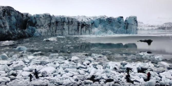 В Исландии отколовшаяся часть ледника в море едва не накрыла волной испуганных туристов