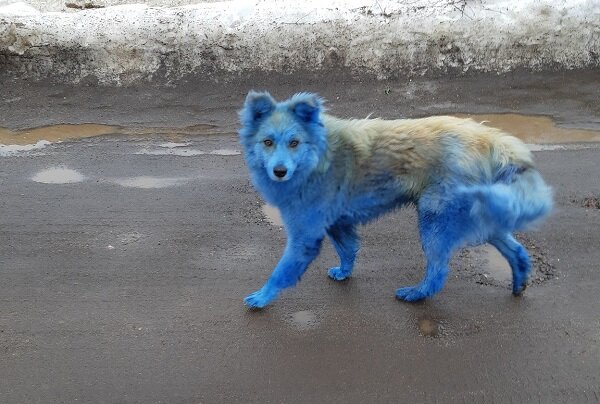 На прошлой неделе всех поразила история синей собаки из Удомли, она попала даже в федеральные СМИ. Жители рассказали, что собаку покрасили в синий цвет, из-за краски животное было дезориентировано и 30 марта попало под машину. Зоозащитники пытались с помощью ветврача вернуть собаку к жизни, но безуспешно. Позже появилось сообщение, что в городе заметили ещё одну собаку необычного цвета. Появилась версия, что животных красят жестокие подростки. Сейчас жительница Удомли Олесия Большакова нашла в Удомле заброшенное здание, где хранятся мешки с синей краской. Рядом со входом много следов людей и животных. Однако люди всё-таки сомневаются, что животные могли сами, без участия людей, так равномерно покраситься, побывав в этом здании.