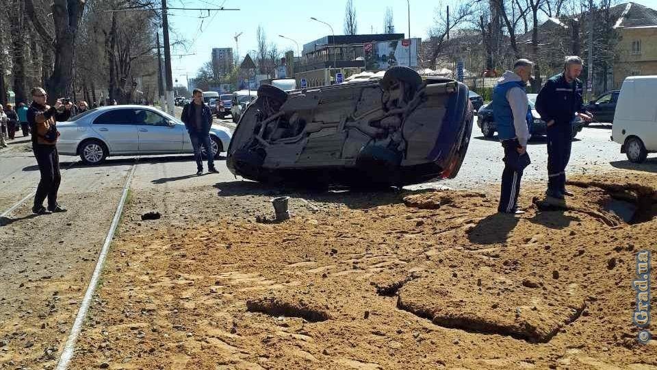 Сегодня приблизительно в 13:40 на Фонтанской дороге, вблизи дома № 55 произошел взрыв. Взрывной волной легковой автомобиль отбросило на трамвайные пути. На видео, размещенном в интернете, видно, что взрывом столб земли и песка поднялся на 10 метров. Пострадавших в результате ЧП нет. В настоящее время на месте работают сотрудники коммунальных служб. Место происшествия огорожено. Движение трамваев остановлено. Подробности на сайте Телерадиокомпании