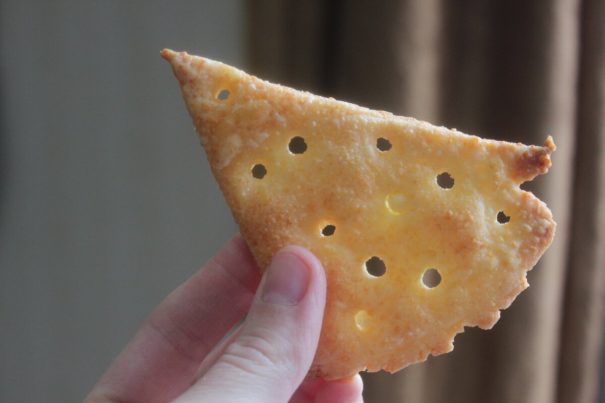 Сегодня испечём очень вкусное, ароматное и действительно лёгкое в приготовлении сырное печенье. Для этого печенья лучше использовать сыр с ярким ароматом. Рецепт хорош ещё и тем, что легко запомнить пропорции (100+100+100+желток). Понадобится Сыр – 100 г Мука - 100 г Сливочное масло – 100 г Желток - 1 шт Щепотка соли Приготовление Всё просто и очень просто. Для начала сыр натираем на тёрке. Все ингредиенты, кроме желтка, отправляем в чашу блендера и измельчаем. Добавляем желток и замешиваем блендером ещё несколько секунд. Тесто быстро соберётся в шар. Всё то же самое можно проделать без блендера, руками. В тесто можно добавить также любимые специи: чёрный перец, паприку и т.п. Готовый колобок теста отправляем в холодильник на 15-20 минут. Теперь раскатываем охлаждённое тесто в пласт. Нарезаем будущее печенье произвольно. Можно сделать тонкие полоски, можно классические круги. Ну а если сделать печенье в виде кусочков сыра да с дырочками, дети будут в восторге! Я свой пласт теста