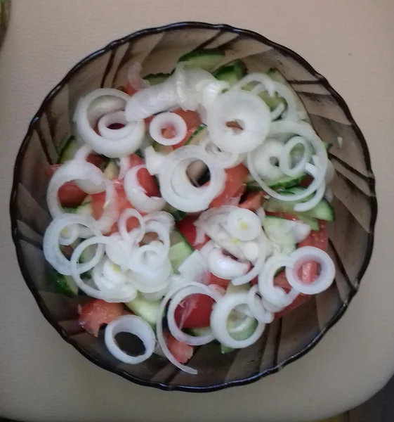 Добрый день, дорогие друзья!Сегодня я поделюсь рецептом очень простого овощной салата "Пятиминутка". Этот салат на столько прост в приготовлении, что с ним справится даже школьник. Попробуйте приготовить, уверена, что вам понравится! Читайте так же рецепт приготовления салата из курицы с ананасом. Для приготовления нам понадобится: Для начала моем огурцы, помидоры, зелень и чистим лук. В салатник нарезаем огурцы тонкими полукольцами, помидоры - небольшими ломтиками, мелко крошим зелень. Добавляем соль, заправляем салат растительным маслом и все перемешиваем. Украшаем салат луком. Для этого нарезаем лук кольцами и аккуратно раскладываем его по верху салата. Приятного аппетита!!! Подписывайтесь на канал, чтобы не потерять этот рецепт и смотреть мои другие рецепты. Если вам понравился рецепт, ставьте лайк и поделитесь в соц. сетях. Если у вас интересные рецепты, присылайте их мне на электронную почту elen-solnce@yandex.ru, я обязательно их опубликую. Другие рецепты здесь.