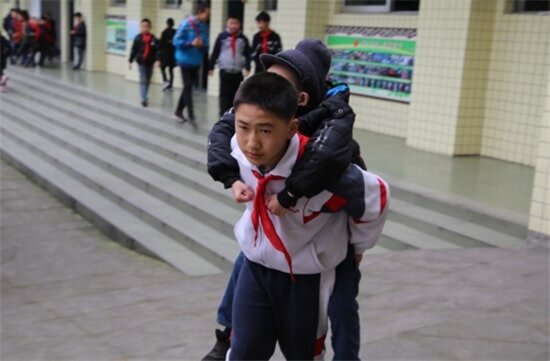 Мальчик из Китая уже 6 лет носит на руках одноклассника с инвалидностью в школу