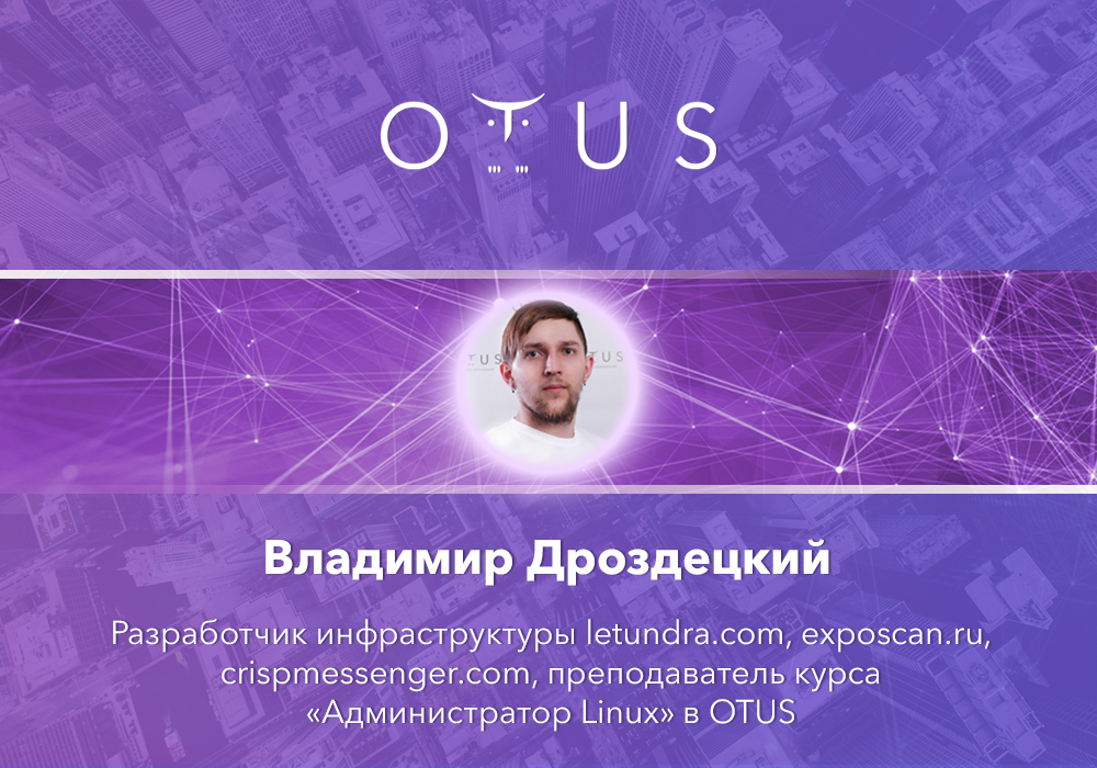 Статья подготовлена для студентов курса «Администратор Linux» в образовательном проекте OTUS. Владимир Дроздецкий — системный администратор с более чем 8-летним опытом работы. Окончил Московский государственный индустриальный университет по специальности «Прикладная информатика в экономике», а также курсы в OTUS «Администратор Linux» и «Devops: практики и инструменты». Имеет действующие инженерные сертификаты вендора Mikrotik. Среди профессиональных достижений можно выделить: - внедрение систем виртуализации на базе продуктов VMWare ESXi; - внедрение IP-телефонии на предприятии и его дочерних организациях; - внедрение системы мониторинга на основе Zabbix; - построение сети wi-fi с роумингом в одном из дочерних предприятий и т. д. Кроме того, Владимир Дроздецкий активно участвовал в различных стартапах, таких как Letundra, Exposcan, Threefold, Crisp-messenger. Профессиональные навыки: 1. Знание различных систем виртуализации (VMWare, Proxmox). 2. Использование Ansible. 3. Наст
