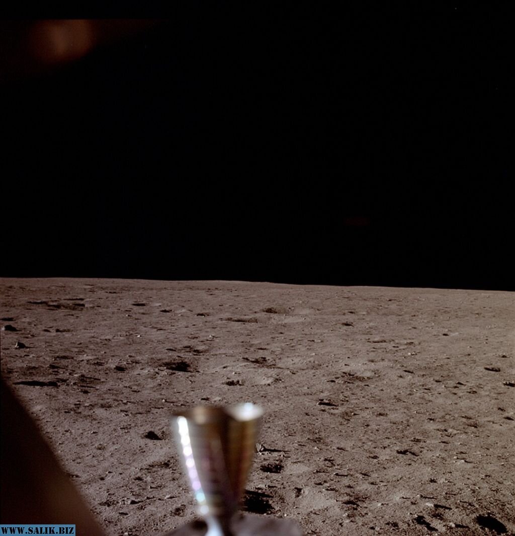 В NASA уверяют, что это первый снимок, сделанный сразу после прилунения. Снимал Армстронг из окна посадочного модуля. В каталоге NASA этот исторический снимок значится под номером AS11-37-5449.