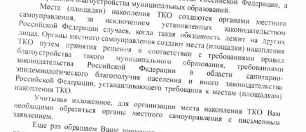 Как пояснили жильцам в мурманском филиале АО «Управление отходами», контейнеры - забота муниципалитета, который должен их устанавливать. Мурманчане подготовили коллективный запрос, однако мэрия с ответом не спешит. Напомним, с начала этого года плату за мусор начисляют и жителям многоэтажных домов, и частного сектора, включая дачников