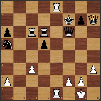 Предлагаю найти мат. У белых конь за две пешки и захваченная линия Е. Этого для белых достаточно, что бы начать и поставит мат черному королю. Подпишитесь на канал и будет много новых, интересных задач. Решение публикую далее 1. Ладья f8. 1. ... черные король f8. 2. Ферзь h8. 2. ... черные король f7. 3. Ферзь е8 мат. Подпишитесь и будет много новых, интересных, познавательных задач. задача 101 тут>>>задача 102 тут>>> задача 103 тут>>> задача 104 тут>>> задача 105 тут>>>задача 106 тут>>> задача 107 тут>>>
